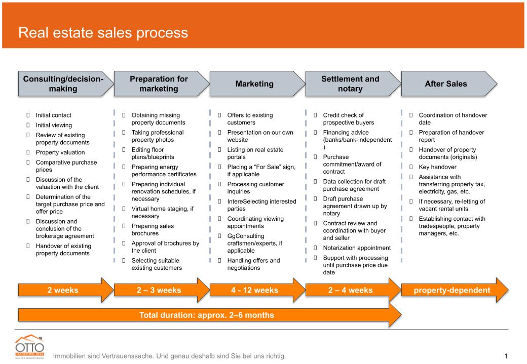 To help you better understand the scope of work and the duration of a professional property sale, we have outlined these aspects for you in detail in the following illustration.